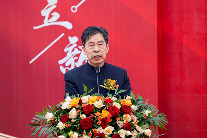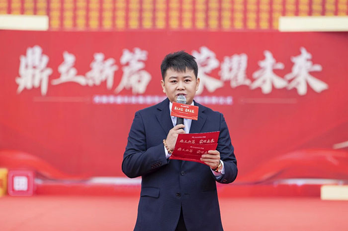 zui后,在热情洋溢的现场氛围中,河南荣盛科技集团董事长楚科奇发布了致辞。他首先代表集团向莅临现场的各位领导、嘉宾及全体员工表示热烈欢迎与诚挚感谢。楚总回顾了集团十二年的发展历程,指出新材料生产基地的建成,凝聚了全体荣盛人的智慧、汗水与坚守,是企业十二年奋斗征程上的重要里程碑,更是企业面向未来、决胜未来的战略新起点。楚总强调,新工厂的顺利落成,得益于各级主管部门的大力支持与高效服务,也离不开集团管理层的高效协同与一线团队的奋力拼搏。他特别感谢了王海军总经理及集团管理层,称赞其在项目战略定位与资源配置中发挥的关键作用;同时,他也向宋广林总经理及全体建设者致敬,感谢他们不畏艰辛、全力以赴,将一片荒芜之地打造为现代化智能工厂。
