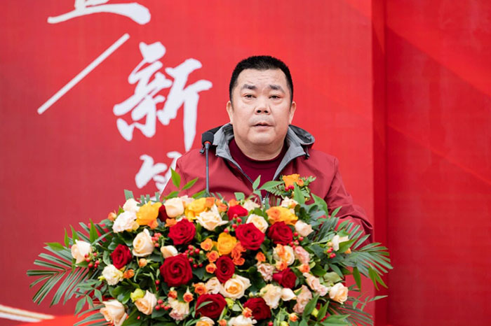 随后,郑州荣盛新威新材料有限公司总经理宋广林发表致辞。作为新材料生产基地前期建设的总负责人,宋总首先向项目建设过程中给予大力支持的集团领导及团队表达诚挚谢意。他指出,基地的顺利落成,离不开楚科奇董事长、王海军总经理的远见卓识与鼎力支持,也凝聚着每一位建设团队成员的辛勤付出。宋总强调,荣盛新威将以此次揭牌为起点,与集团公司深化协同,聚焦两大战略方向:一是实现全产业链布局升级,构建从低温到高温、从中端到高端的完整产品矩阵,以“全产业链覆盖”打造核心竞争优势;二是推动创新驱动战略突破,在技术研发、营销模式与产品迭代三大维度持续发力,全力抢占行业发展制高点。