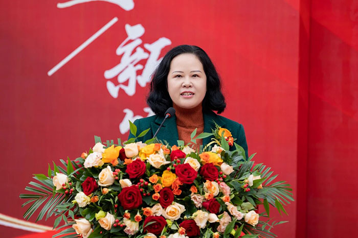 随后,九三学社河南省科技厅委员会副主委、五支社主委孟彩虹在致辞中,代表九三学社科技厅委员会向荣盛科技集团致以热烈祝贺。她指出,新材料产业是国民经济的先导性产业,更是支撑高端制造、驱动技术创新与产业升级的核心引擎。荣盛新材料生产基地的落成,不仅是企业迈向新征程的重要里程碑,更是我省布局战略性新兴产业、培育新质生产力的生动实践,充分彰显了企业的战略远见与创新实力。孟主委表示,九三学社科技厅委员会将与荣盛科技集团开展深入交流与合作,共同为我省科技创新事业和现代化产业体系建设贡献更大力量。